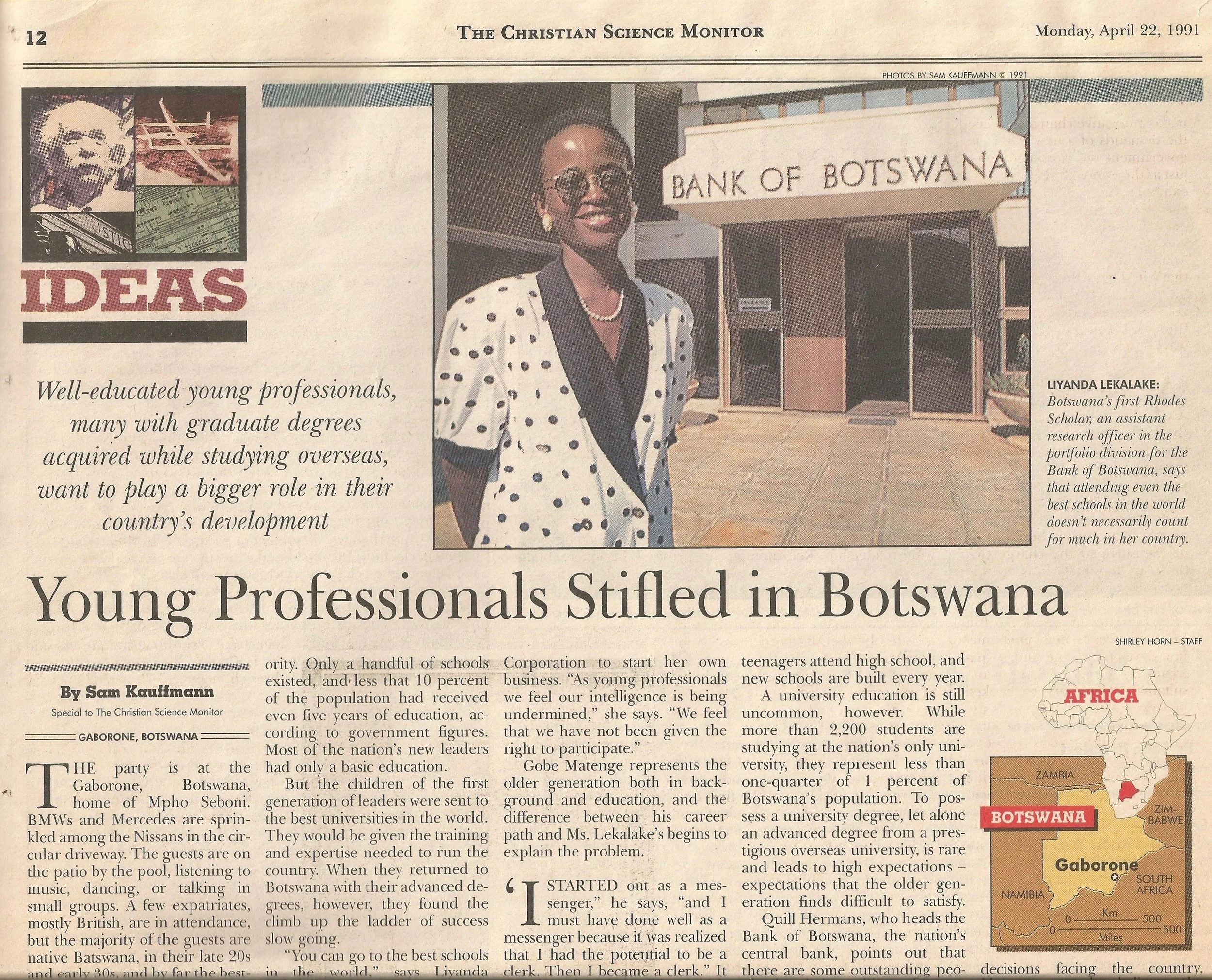 Examines the current situation in Botswana where many of the nation’s best-educated young professionals find themselves shut out of positions of leadership.
